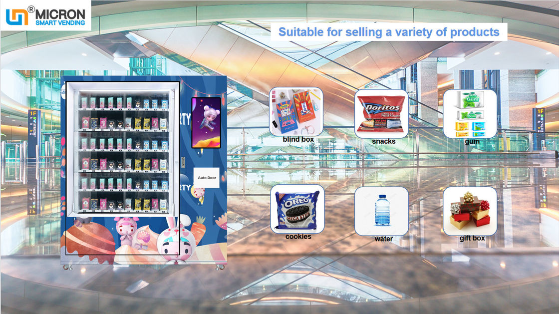 एलिवेटर और टचस्क्रीन, रिमोट कंट्रोल और विज्ञापन डालने के साथ बड़ी क्षमता वाली ब्लाइंड बॉक्स वेंडिंग मशीन, बीच में पिकअप