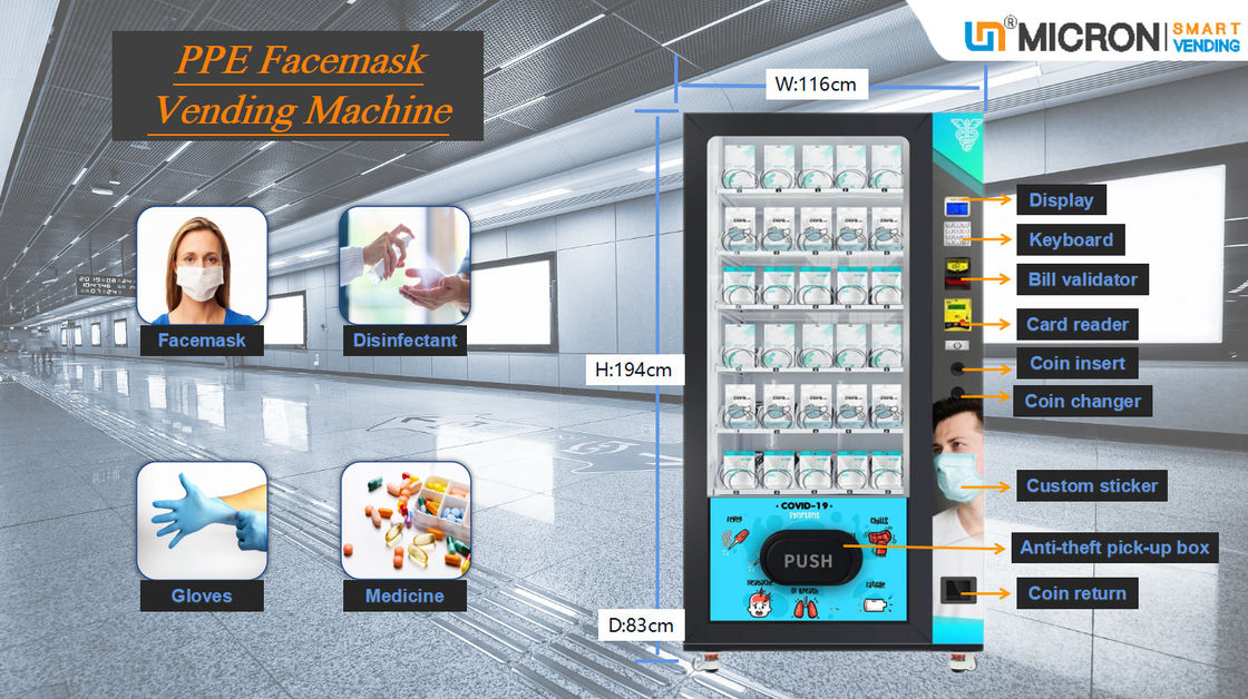 सस्ती मेडिकल वेंडिंग मशीन, संपर्क रहित भुगतान विधि मोबाइल फोन द्वारा रिमोट कंट्रोल किया जा सकता है